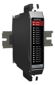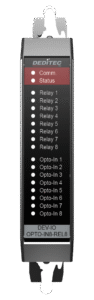 Das NET-DEV-OPTO-IN8-REL8 Modul verfügt über 8 digitale Eingänge und 8 digitale Ausgänge. Es kann zwischen 3A und 5A Schaltleistung ausgewählt werden. Es dient als Erweiterungsmöglichkeit für die NET-CPU Basismodule und wird mittels Plug’n Play Steckverbindung (DIN Rail-Bus) in ein bestehendes NET-System integriert.
