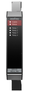 Das NET-DEV-REL4_UM_12A Modul verfügt über 4 Wechsler Relais-Ausgänge mit je 12A Schaltleistung. Es dient als Erweiterungsmöglichkeit für die NET-CPU Basismodule und wird mittels Plug’n Play Steckverbindung (DIN Rail-Bus) in ein bestehendes NET-System integriert.