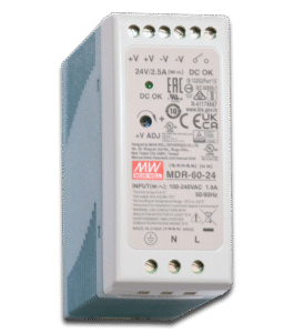 Das MDR-60-24 von Mean Well ist ein 60 W Netzteil zur Hutschienenmontage für industrielle Anwendungen. Es bietet Schutz vor Kurzschluss, Überlast, Überspannung und Überhitzung.