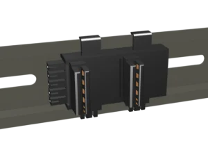 Der DIN-Rail Verbinder ist ein einzelnes BUS Segment, welches die Verbindung zu anderen Modulen ermöglicht. Er wird in die Hutschiene geclipst und seitlich an einen bereits vorhandenen DIN-Rail Verbinder drangesteckt.